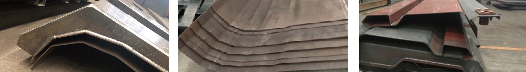 3道折彎產品、5道折彎產品、大角度折彎產品。由于低屈強比高延伸的特性以及大明豐富的折彎經驗,產品未出現折彎開裂情況。